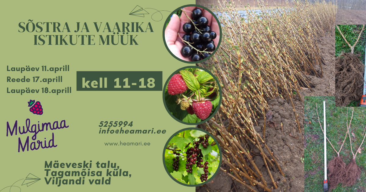 Hea võimalus soetada endale musta, punase või valge sõstra ja vaarika taimi otse istikukasvataja käest meie HULGIHINDADEGA