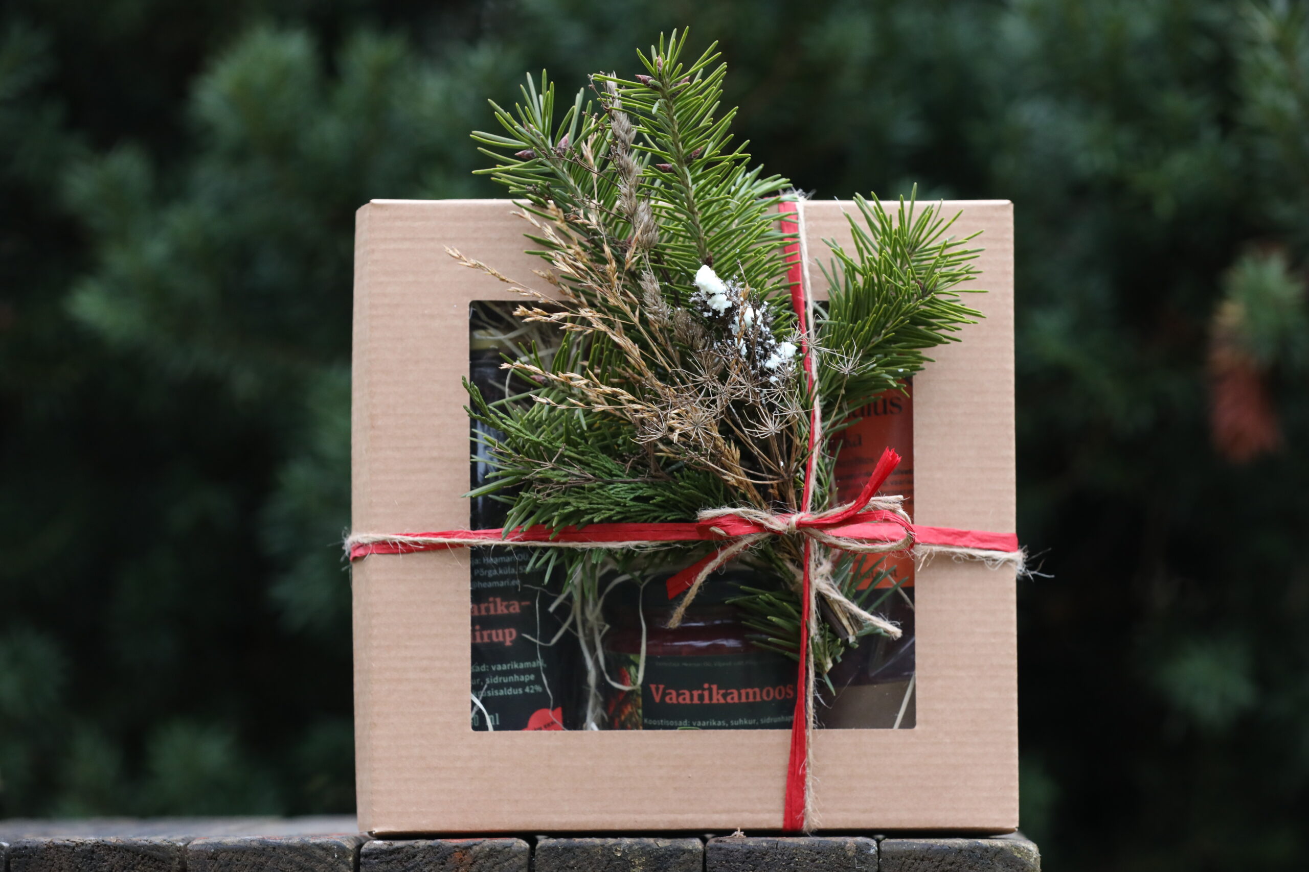 Vaarikast tehtud tooted on pruunis, aknaga karbis. Karp on mugavalt avatav ja uuesti suletav, saab taaskasutada (peal ei ole kirjeid ega kleebiseid).  Karbiga on kaasas jõulukaart, mille saab soovi korral eemaldada, ümber vahetada või lisada teksti.