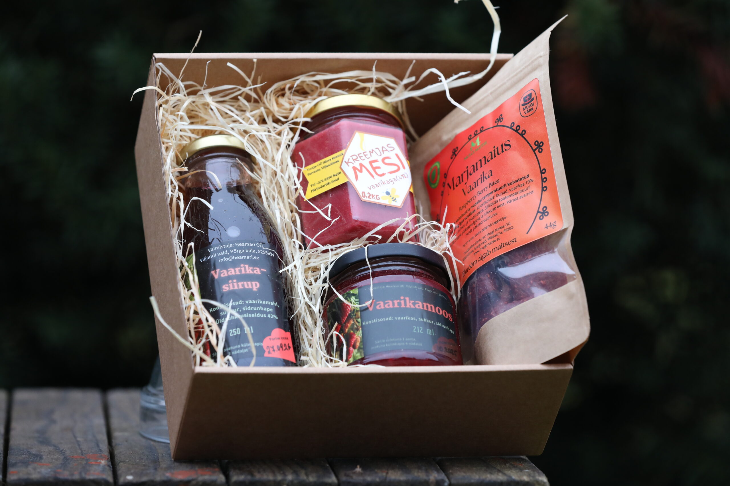 Selle kinkekarbi sisuks on vaarikast tehtud tooted: