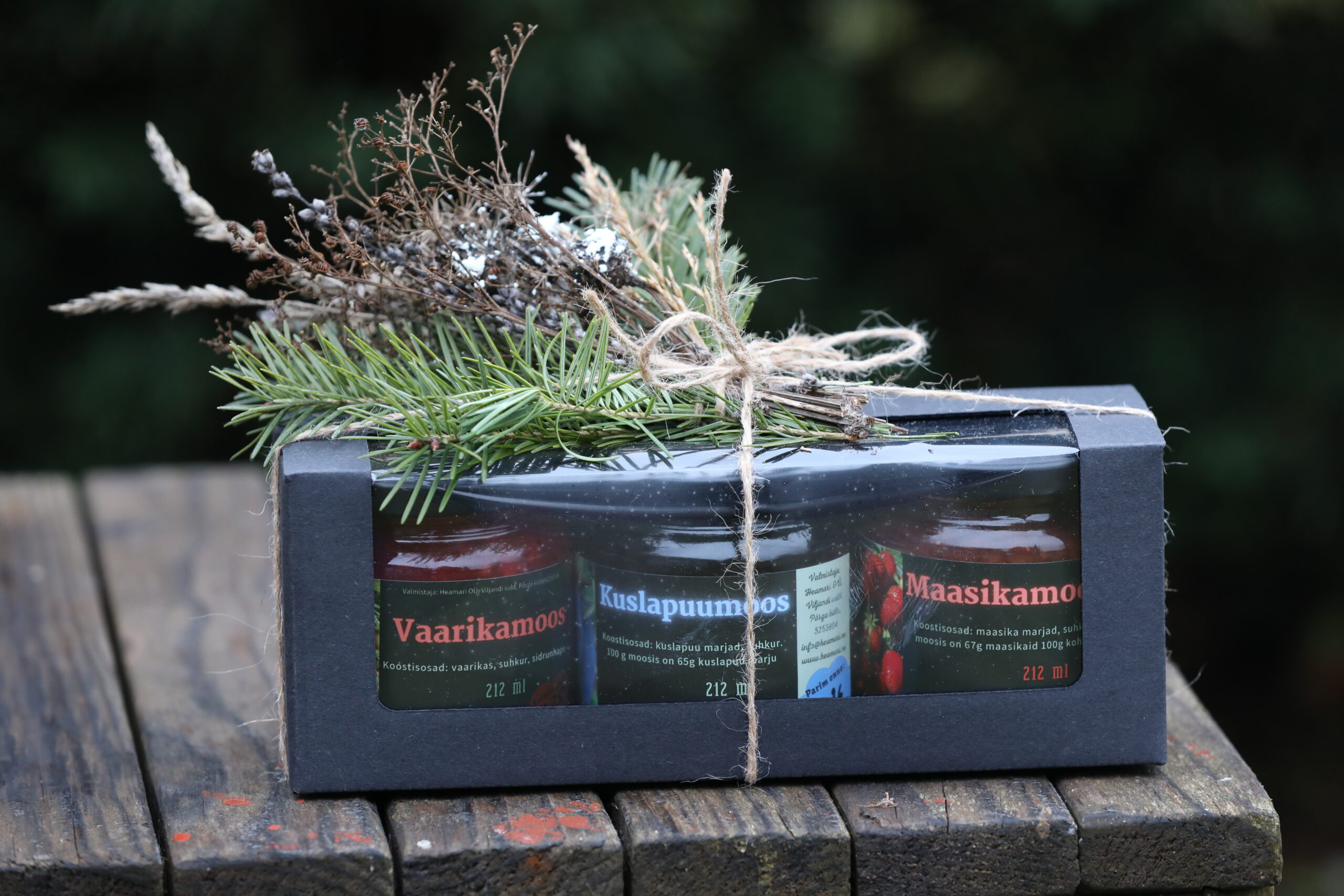 Kinkekarbi sisuks on kolm erinevat, pannkoogi peale panemiseks, sobivat, moosi